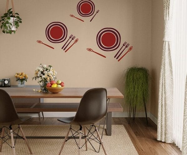 STENCIL COLOURS: Vine Yard (8709), Rich Tomato (9405)WALL COLOUR: Cane Beige (8563)