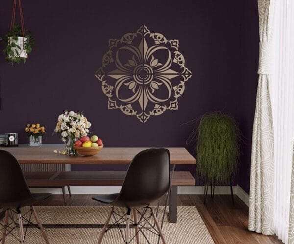 STENCIL COLOURS: Timber Land (8759), Cookie Dough (8762)WALL COLOUR: Majestic Purple (8205)
