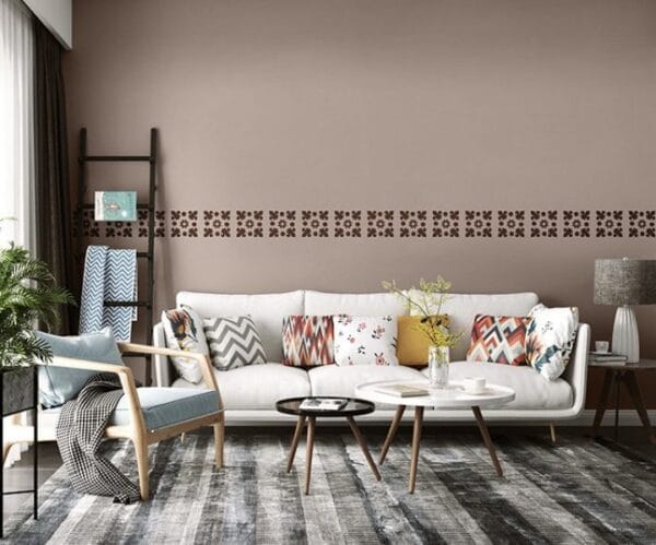 STENCIL COLOURS: Nut Brown (0419)WALL COLOUR: Wild West (8768)