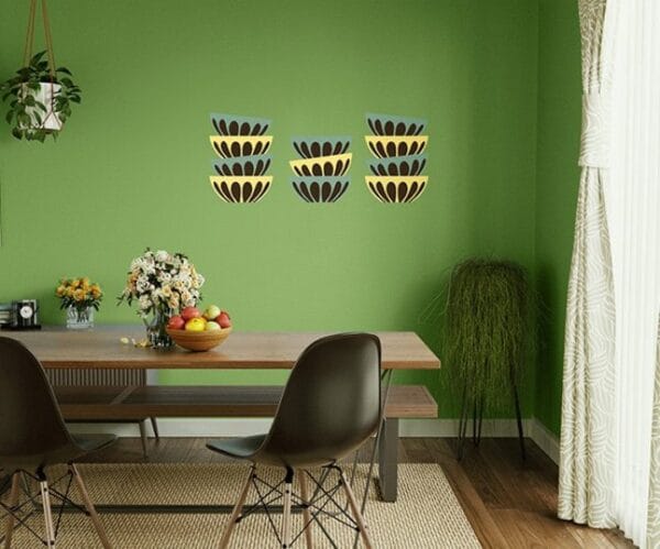 STENCIL COLOURS: Wild Yellow (7865), Digital Grey (8471)WALL COLOUR: Iced Cucumber (7657)